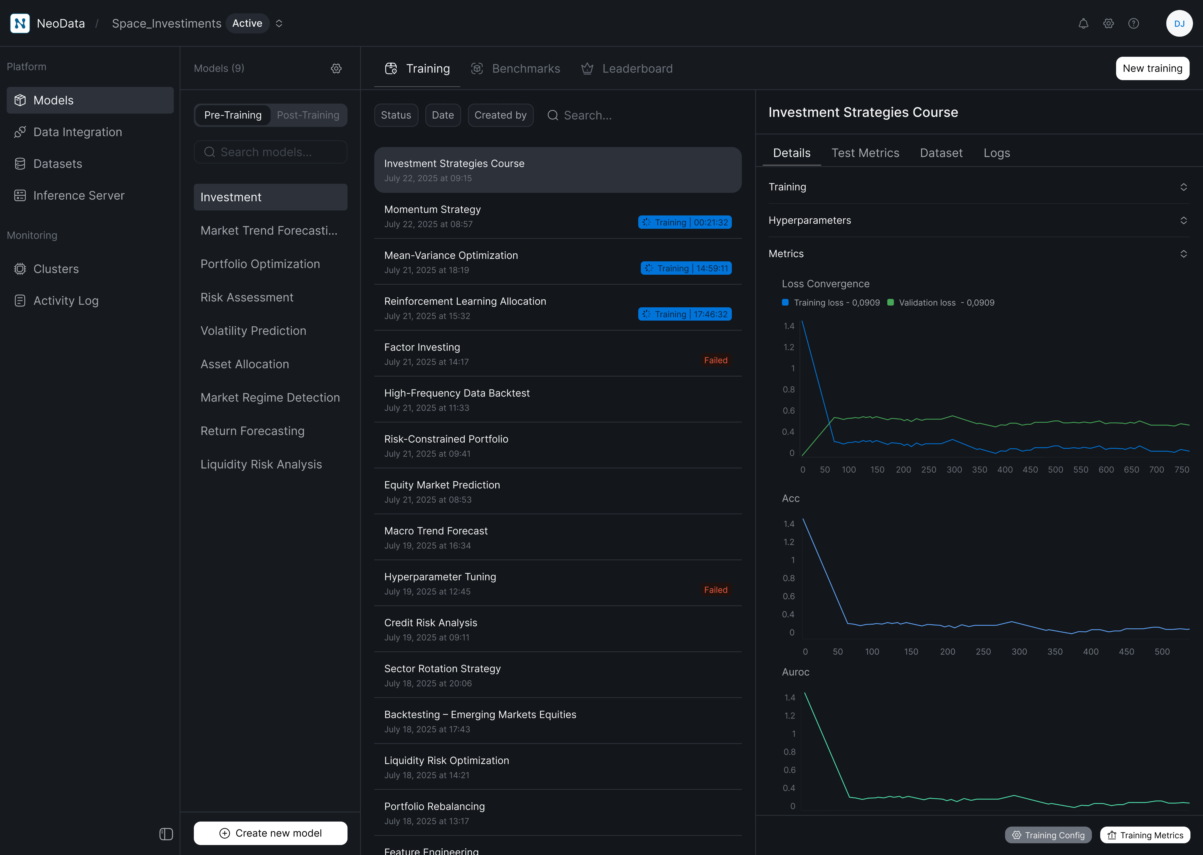 Train LDM models using curated datasets and continuously iterate through training runs and checkpoints.NeoData keeps data, training, and evaluation tightly connected, enabling faster experimentation and higher-quality model outcomes.